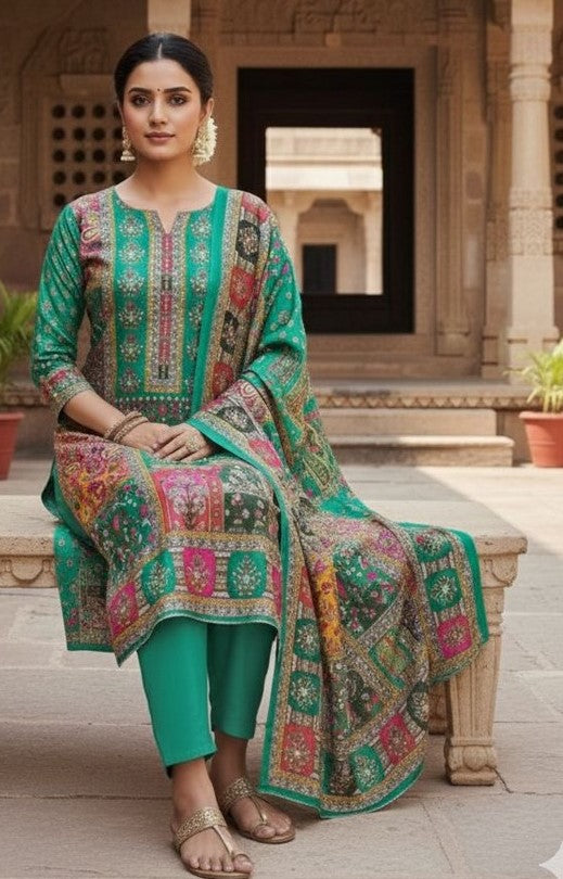 | Color | Top Color - Green, Bottom Color - Green, Dupatta Color - Green |