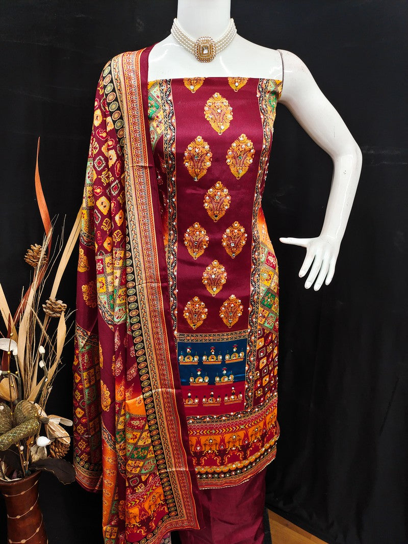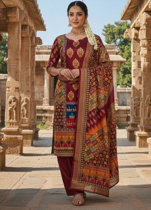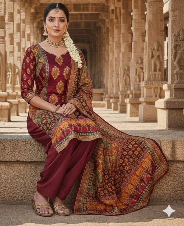 | Color | Top Color - Maroon, Bottom Color - Maroon, Dupatta Color - Maroon |