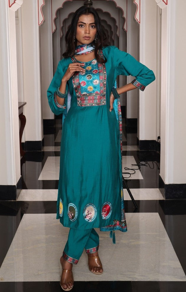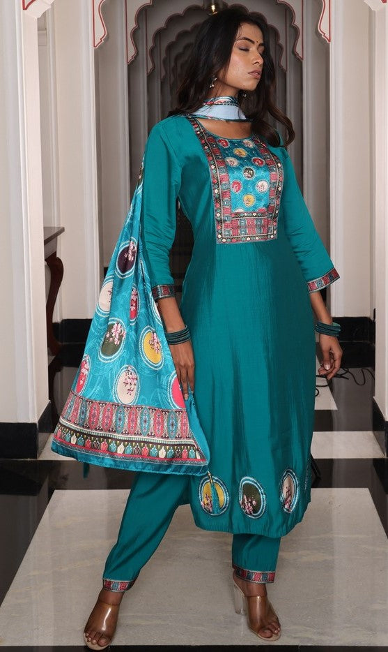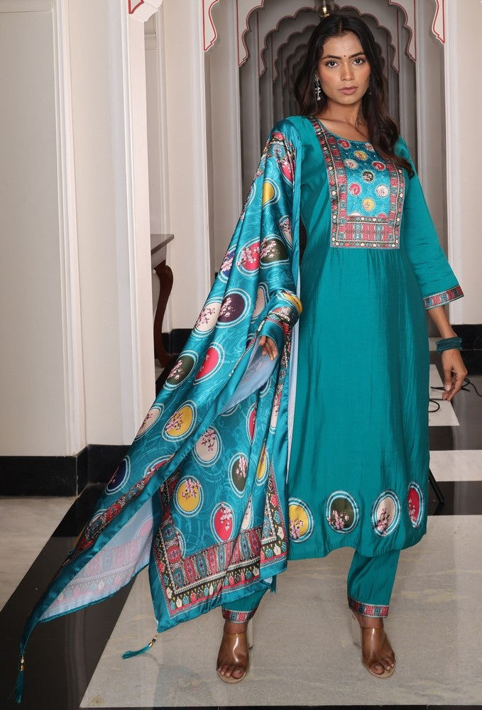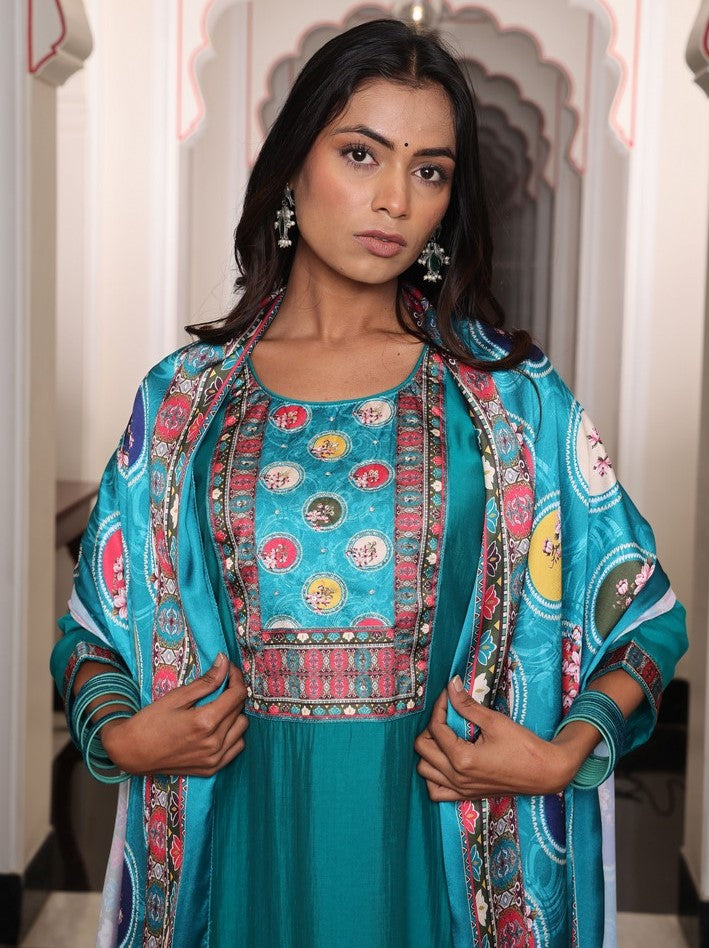Lovely Turquoise Color Viscose Fabric Designer Suit