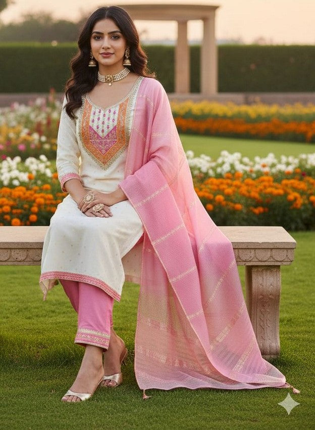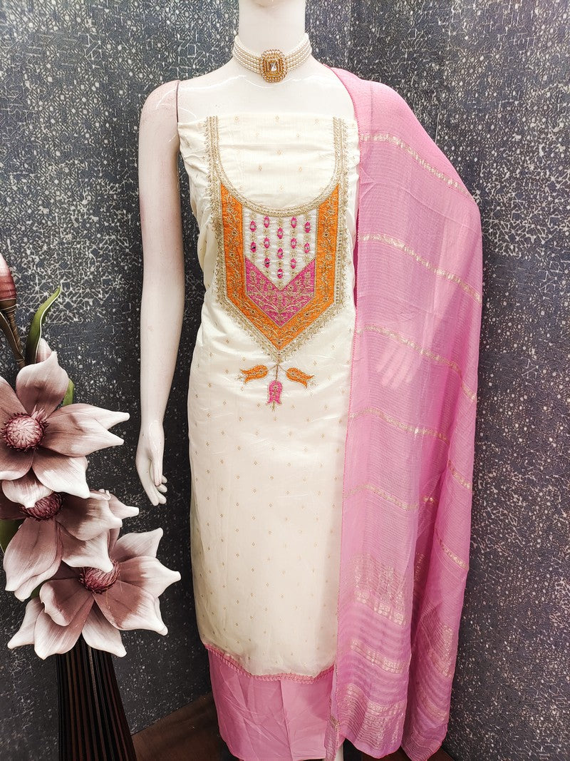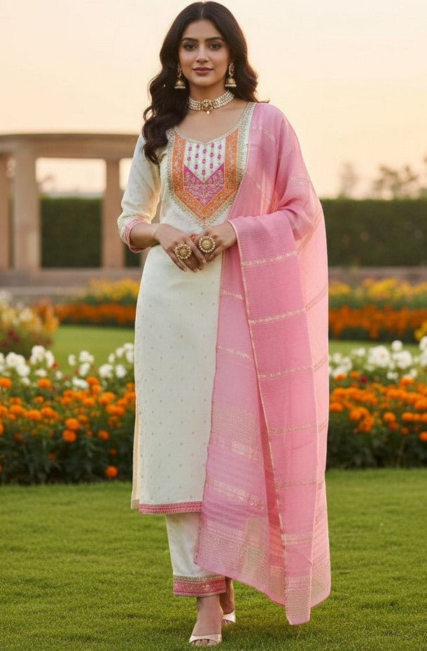 | Color | Top Color - White, Bottom Color - Pink, Dupatta Color - Pink |