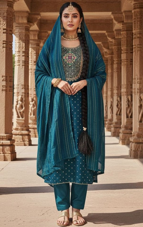 | Color | Top Color - Teal, Bottom Color - Teal, Dupatta Color - Teal |