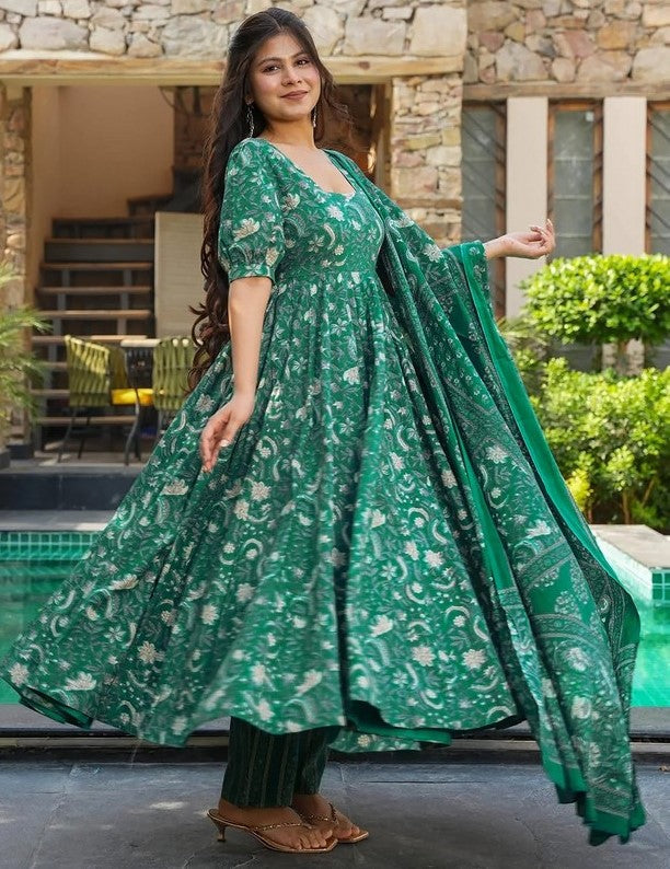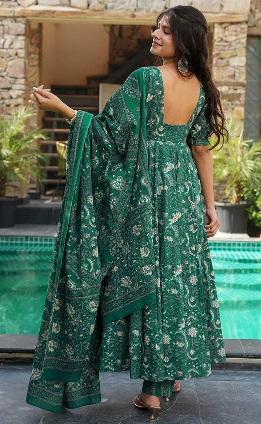 Tasteful Green Color Muslin Fabric Designer Suit