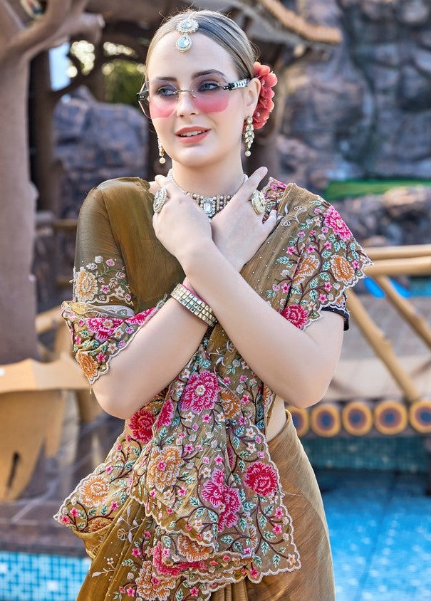 | Color | Saree Color - Golden, Blouse Color - Golden |