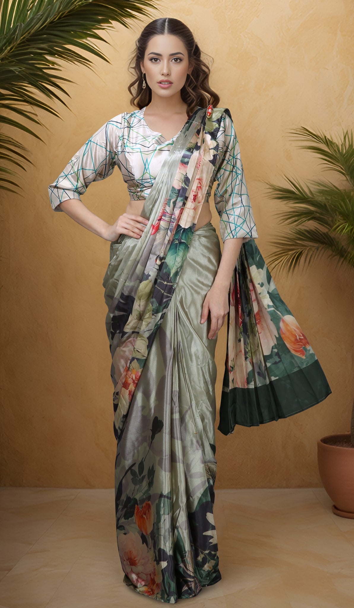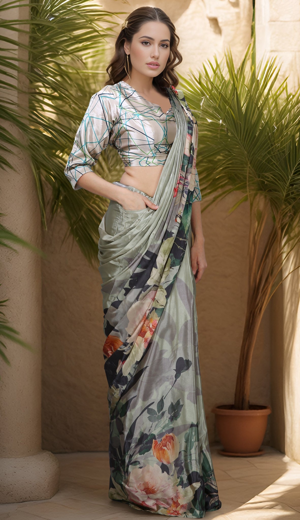 Amazing Designer Casual Wear Silk Crepe Fabric Saree