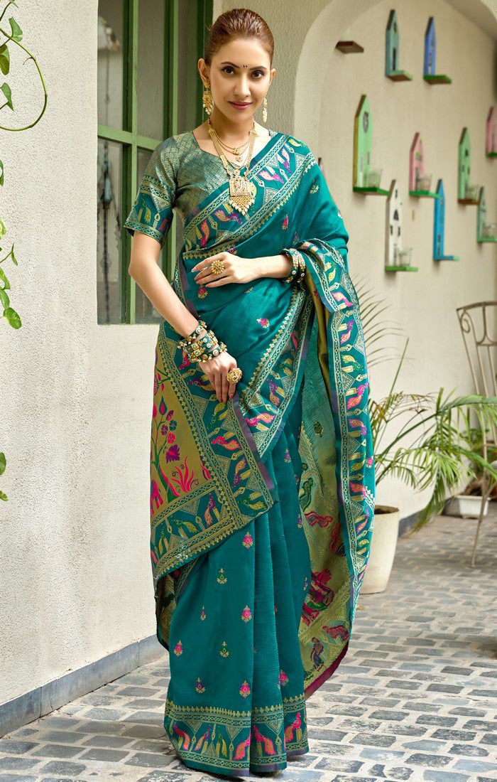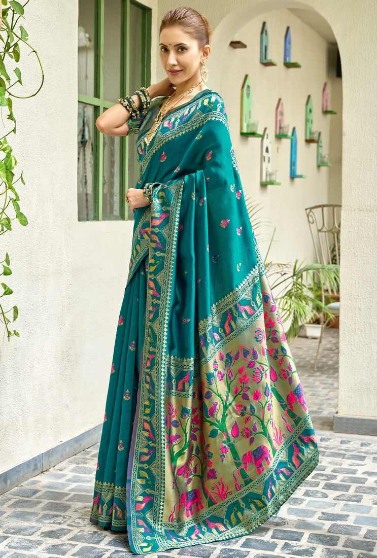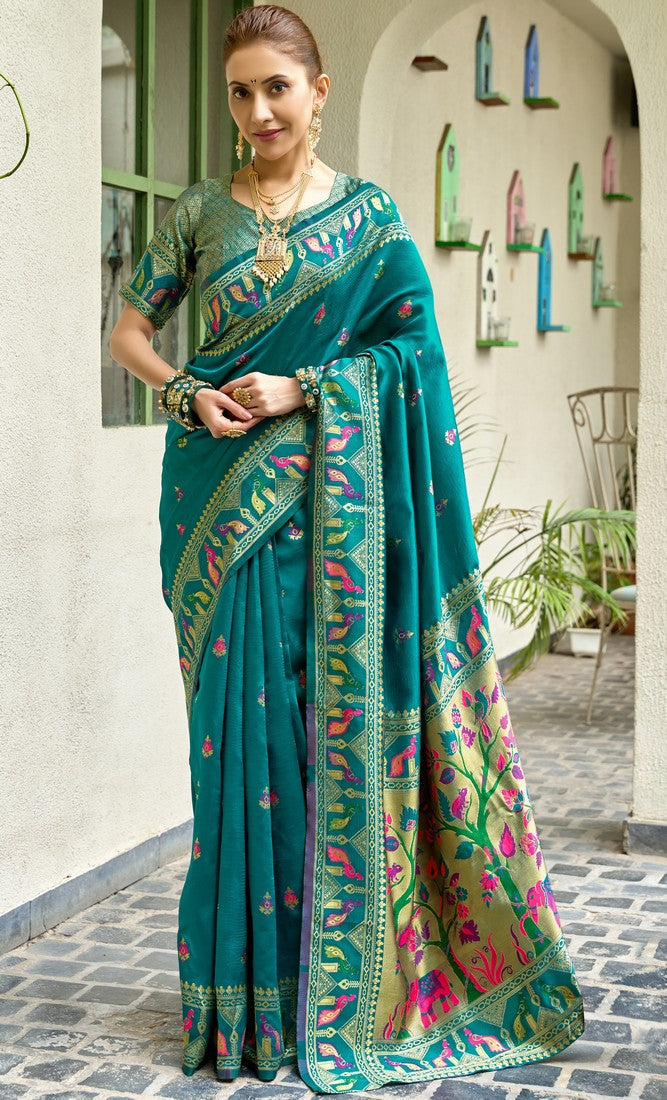 | Color | Saree Color - Teal, Blouse Color - Teal |