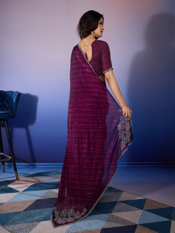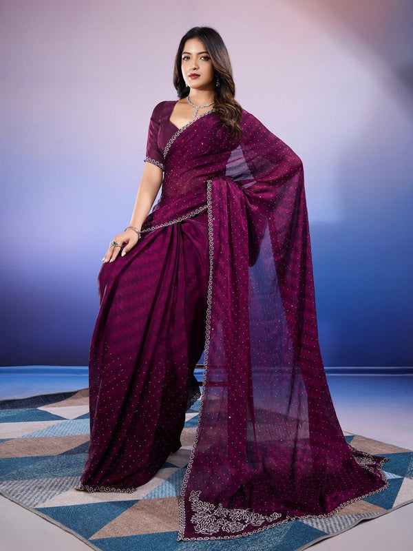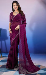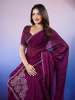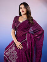 Amazing Voilet Color Chiffon Fabric Designer Saree
