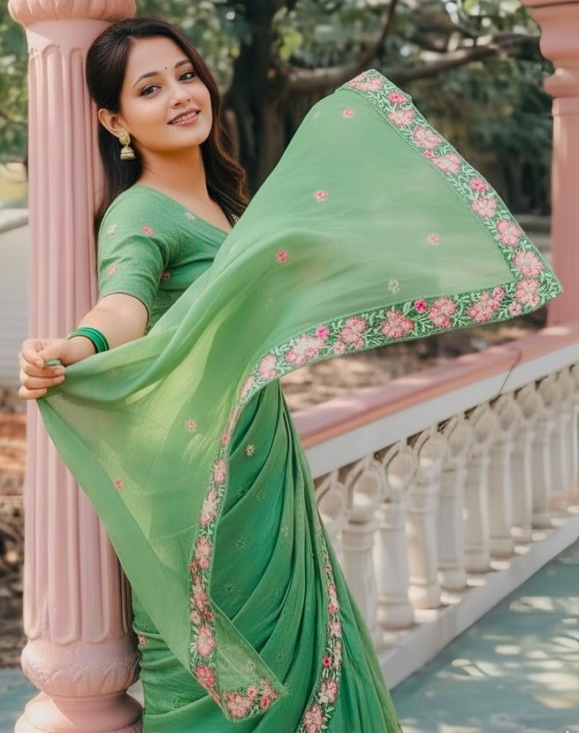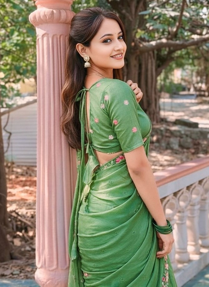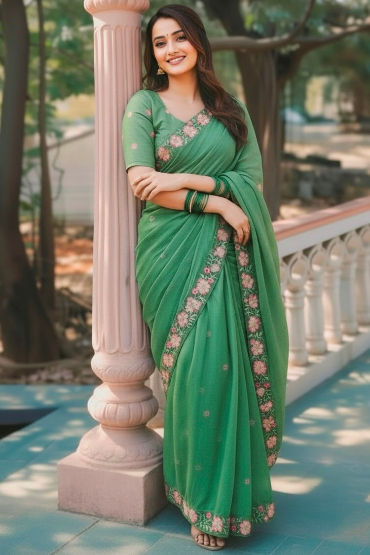 Beautiful Green Color Silk Fabric Designer Saree