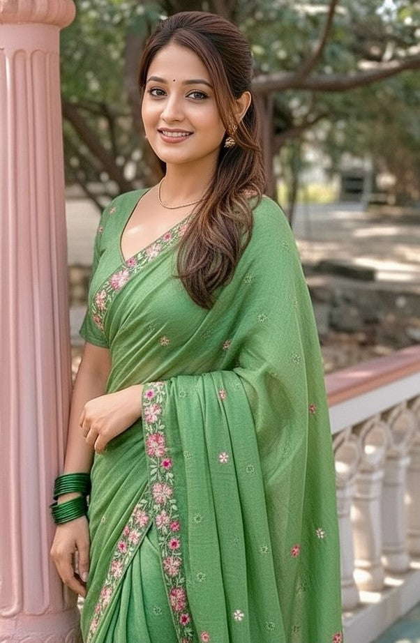 Color Saree Color - Green, Blouse Color - Green