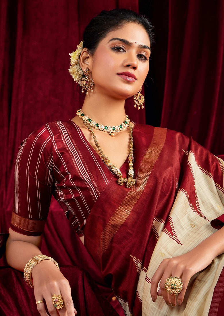 Beautiful Maroon Color Silk Fabric Casual Saree