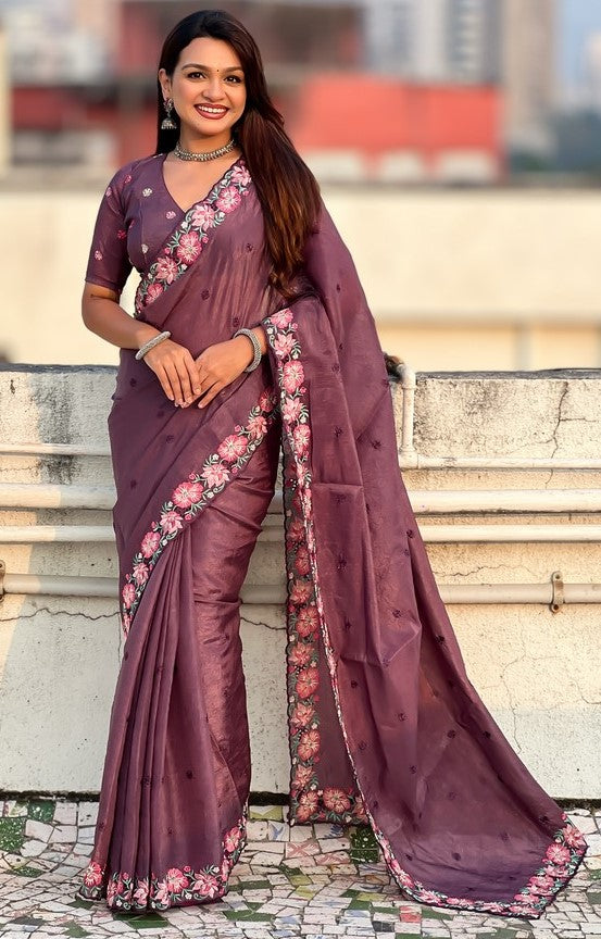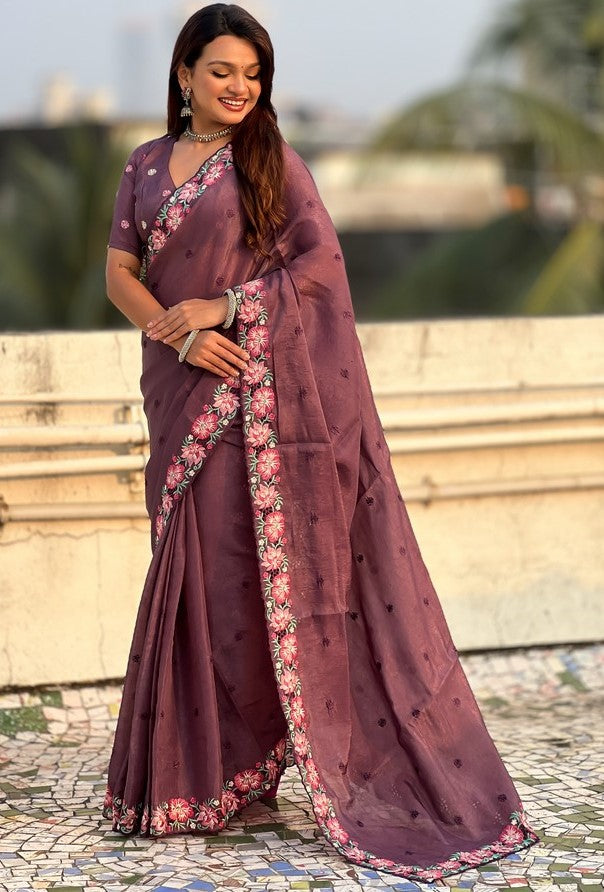 Beautiful Wine Color Silk Fabric Designer Saree