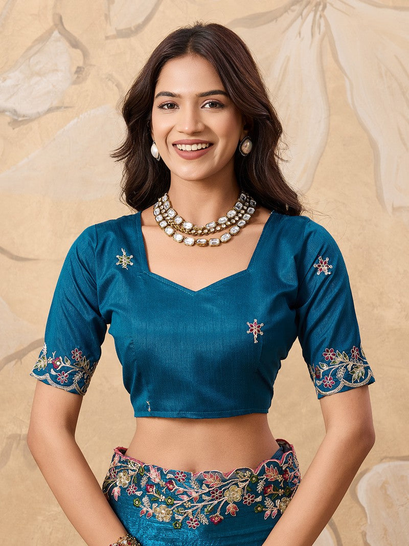 | Color | Saree Color - Teal, Blouse Color - Teal |