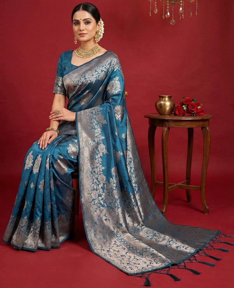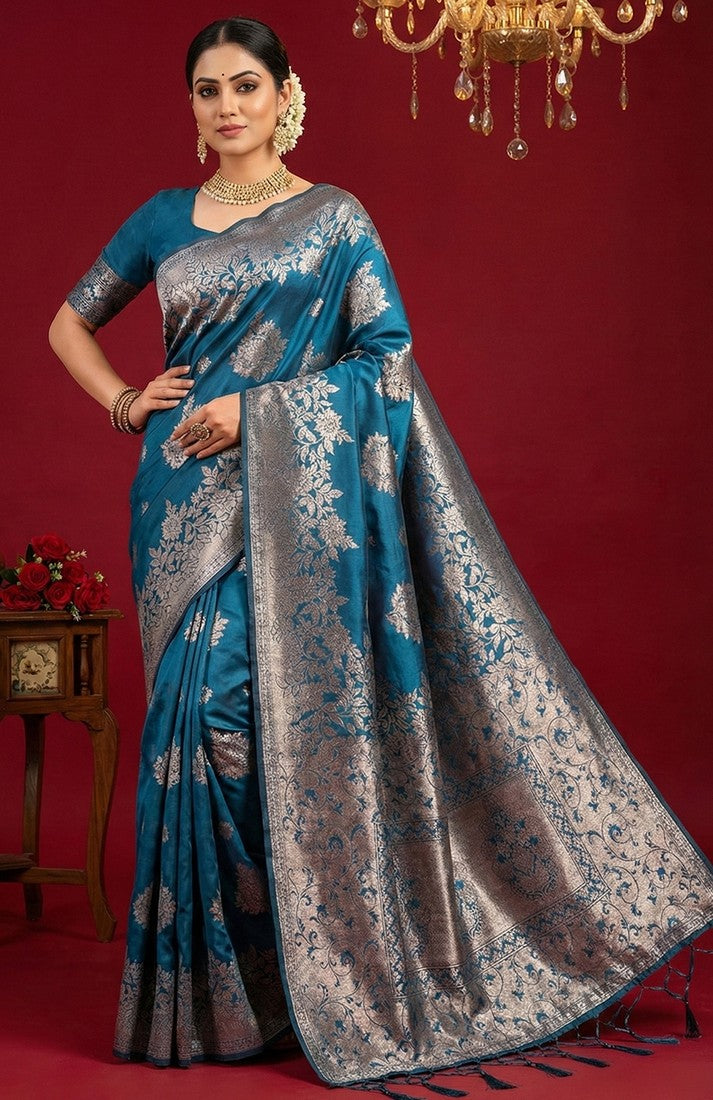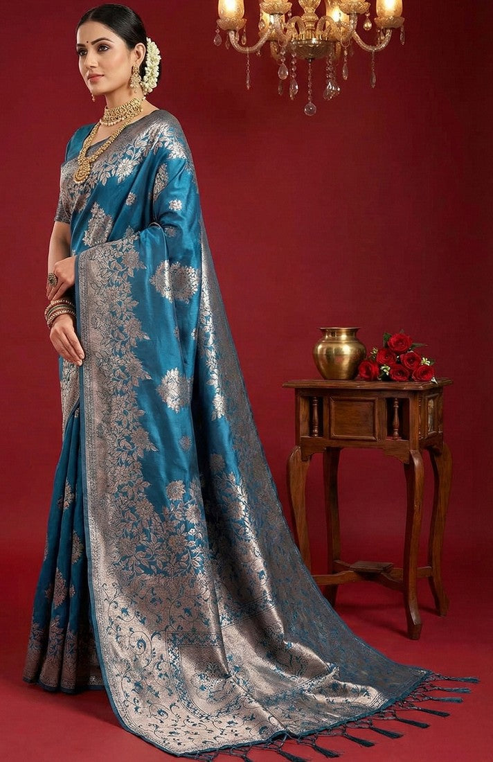 | Color | Saree Color - Teal, Blouse Color - Teal |