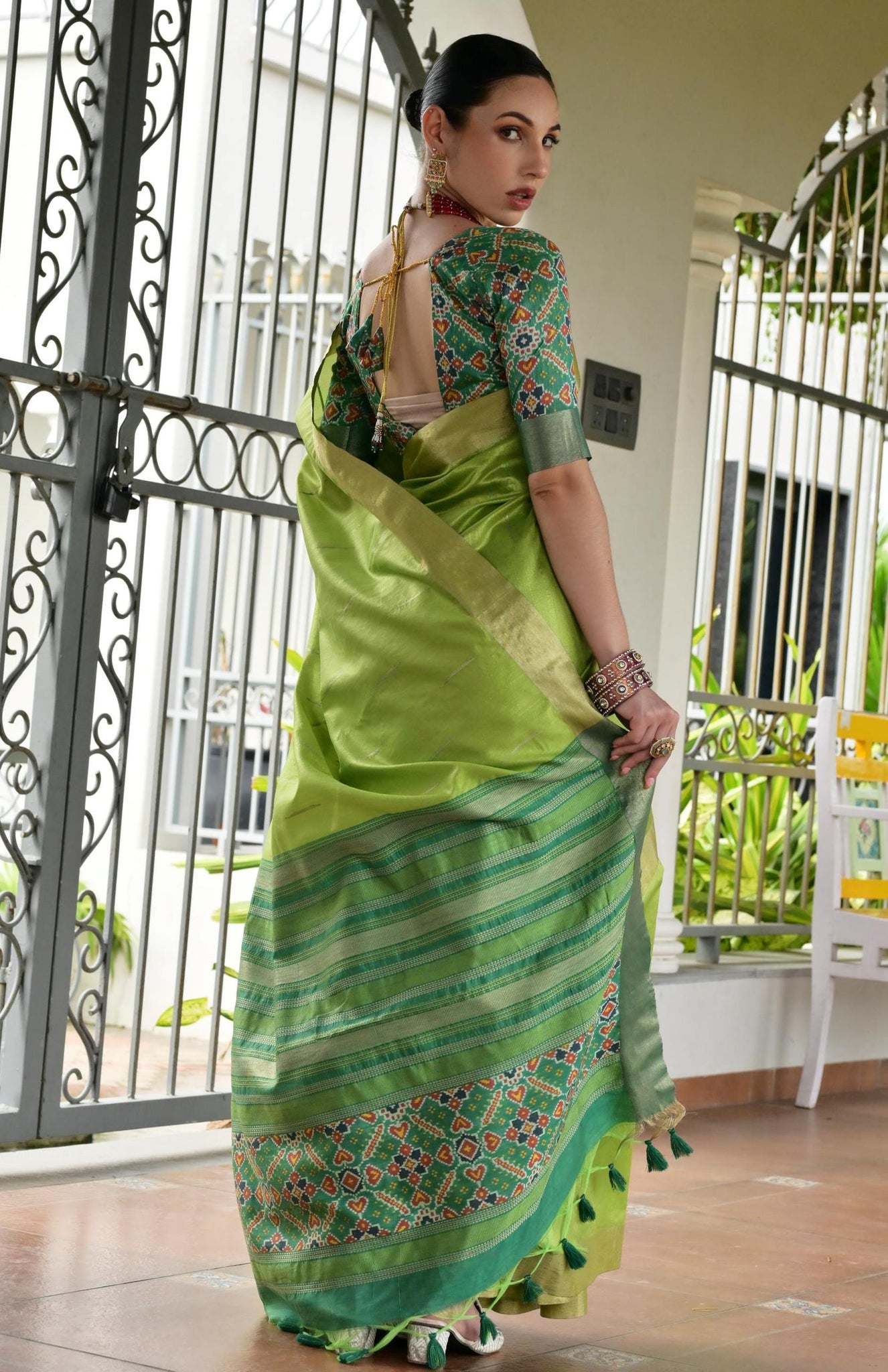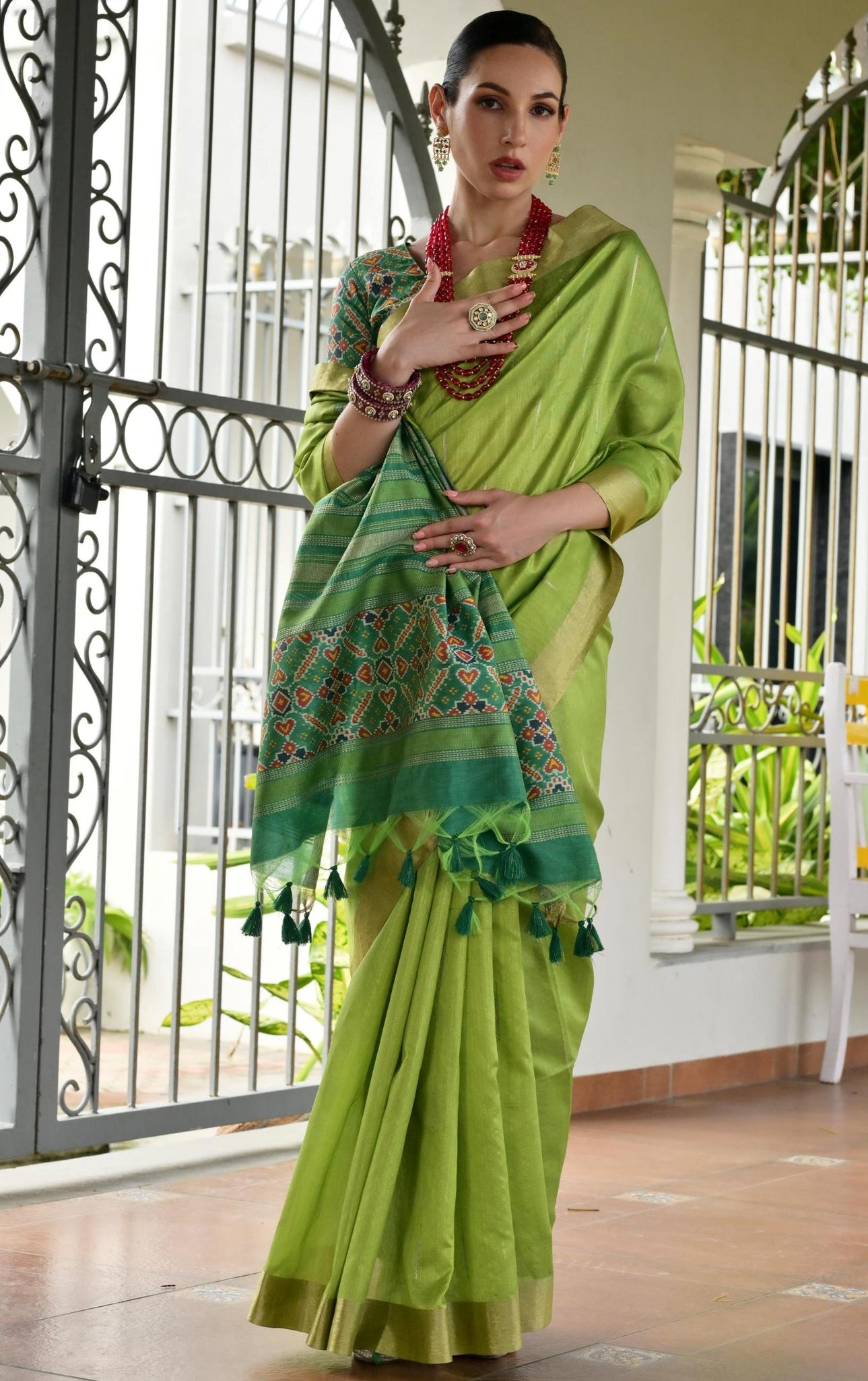 Stunning Green Color Raw Silk Fabric Casual Saree