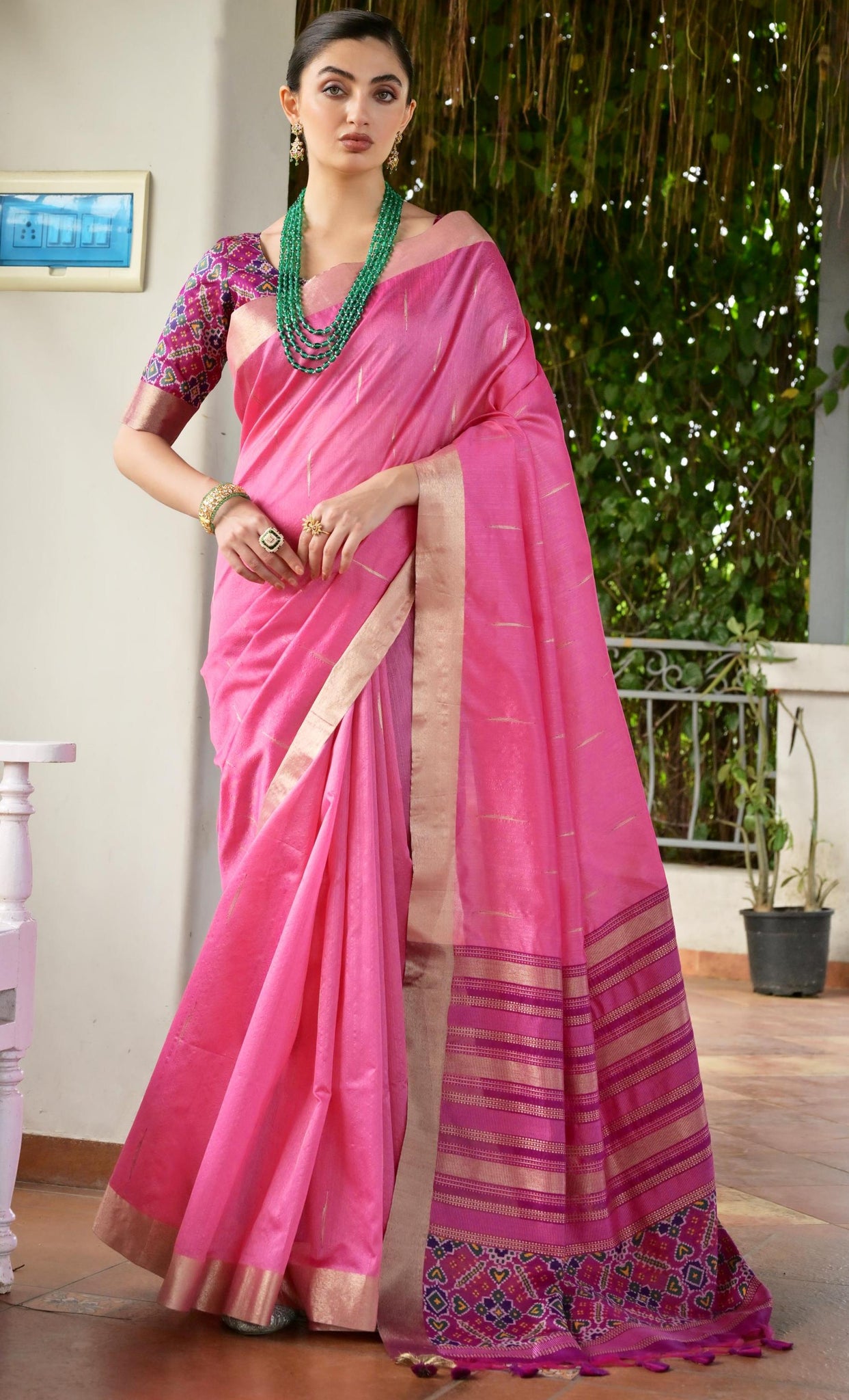 Stunning Pink Color Raw Silk Fabric Casual Saree