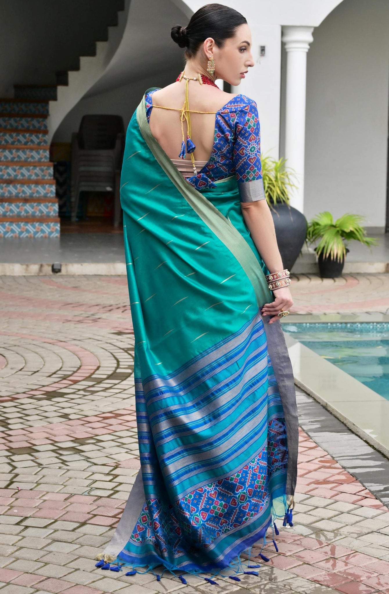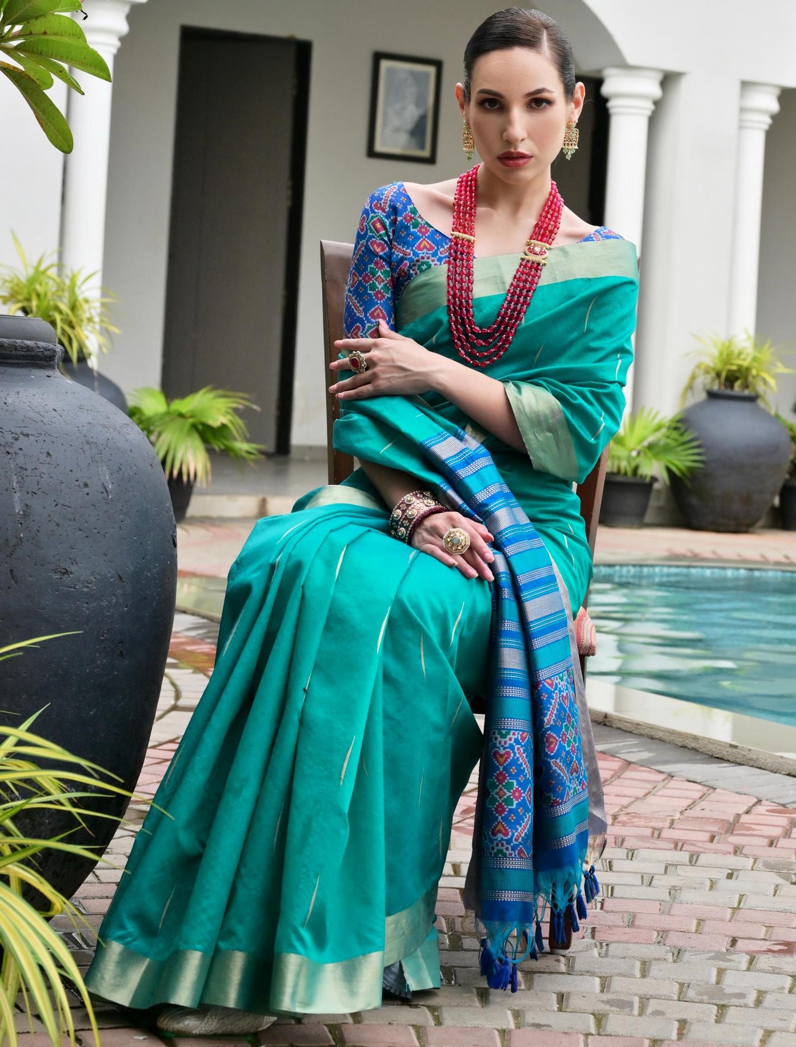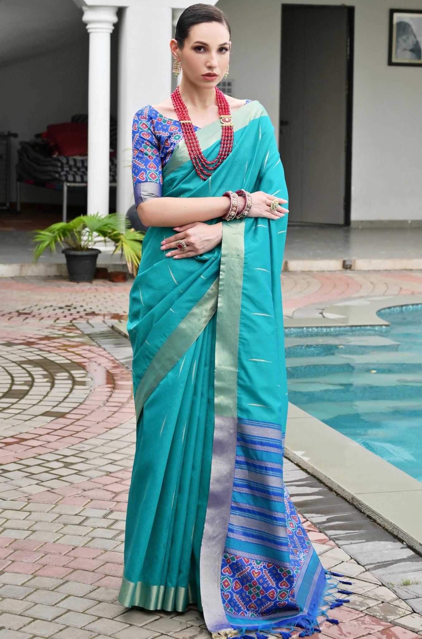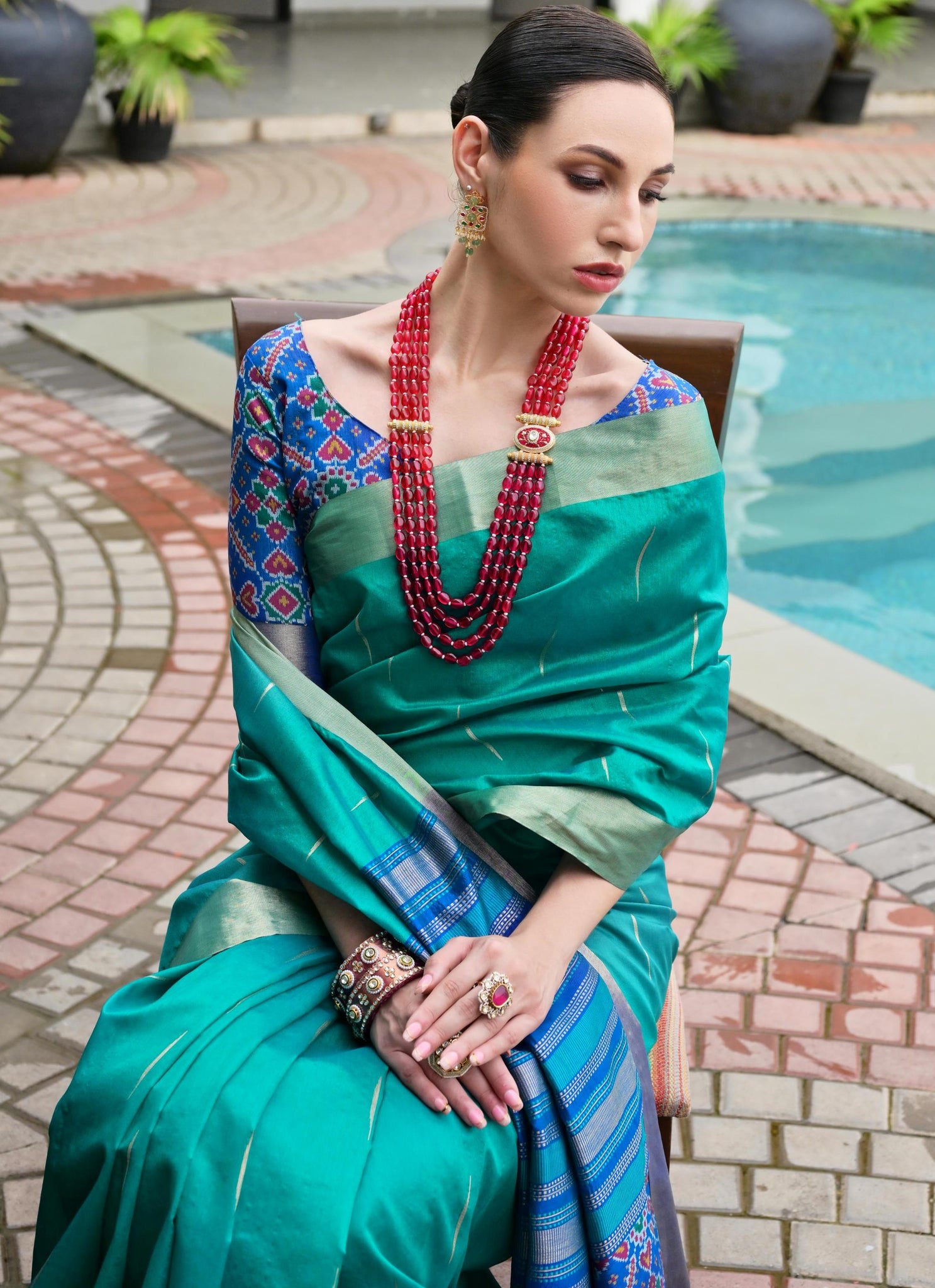 Stunning Turquoise Color Raw Silk Fabric Casual Saree