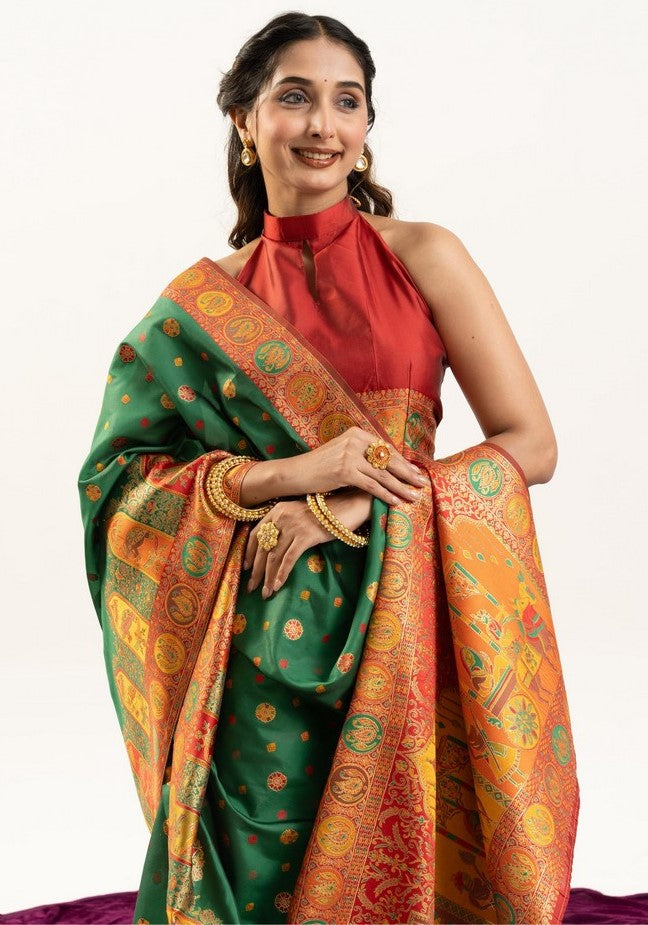 Color Saree Color - Green, Blouse Color - Red