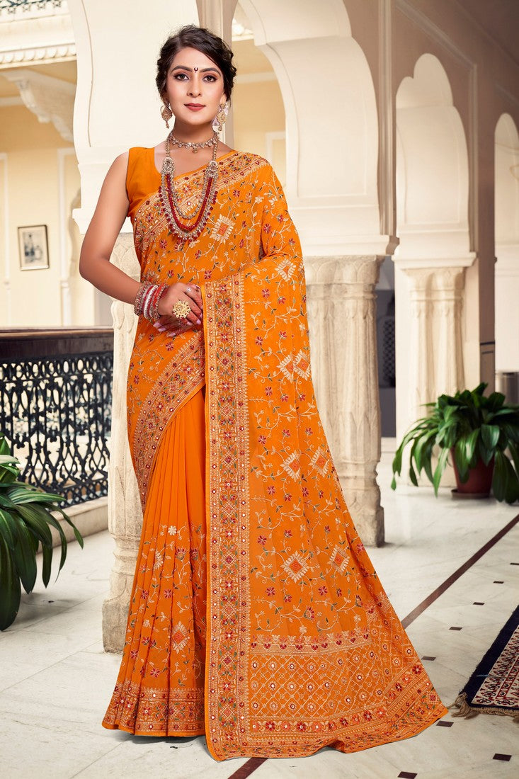 Superb Mustard Color Georgette Fabric Partywear Saree