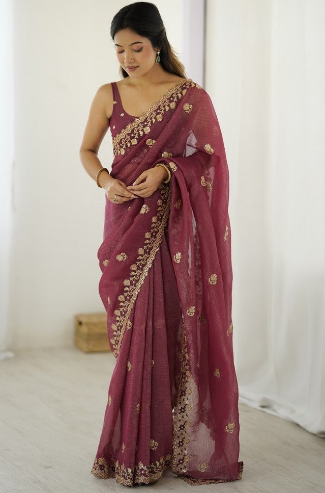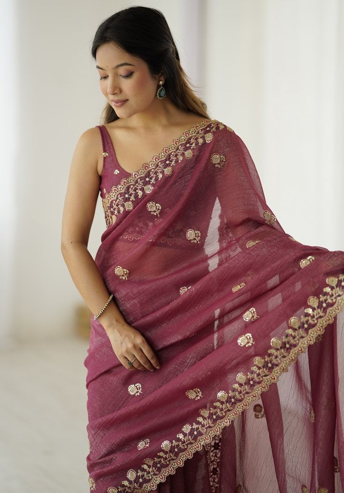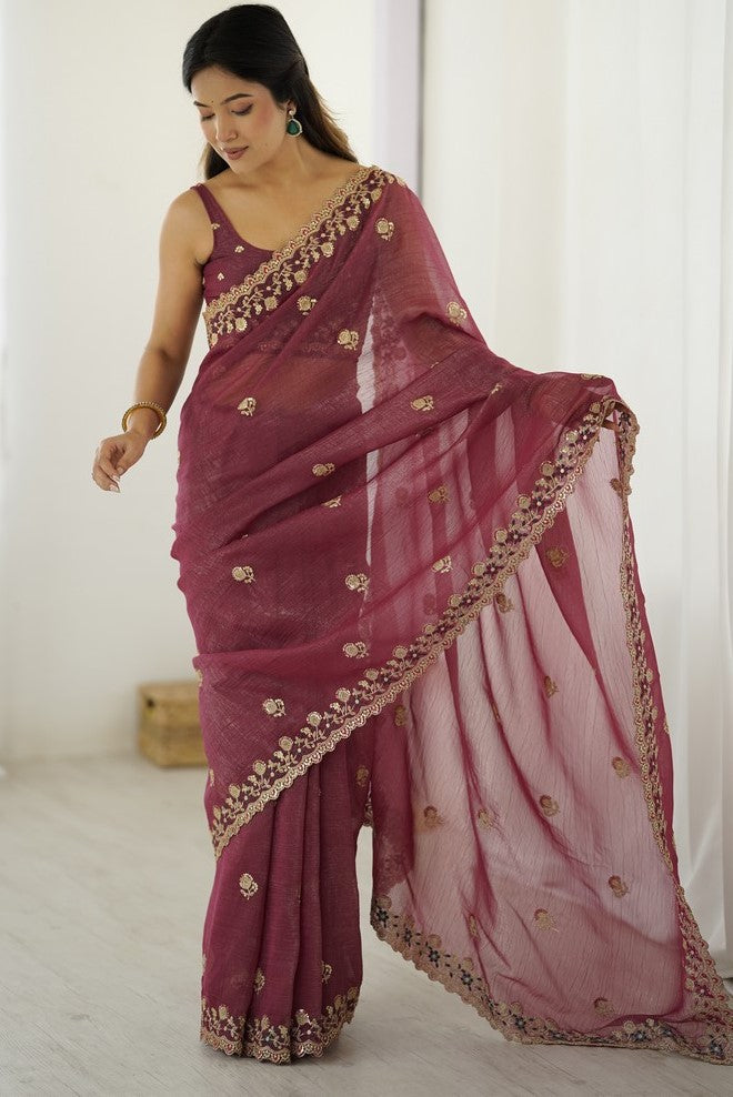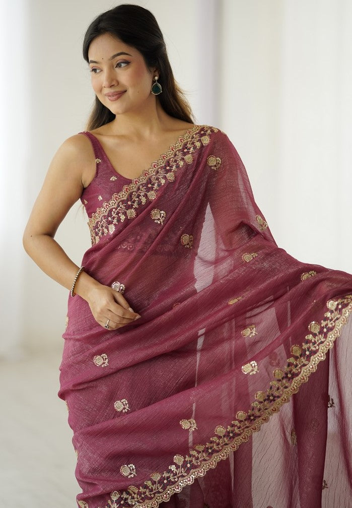 Wonderful Brown Color Crunchy Fabric Designer Saree