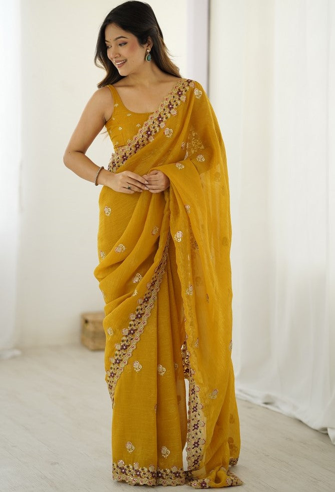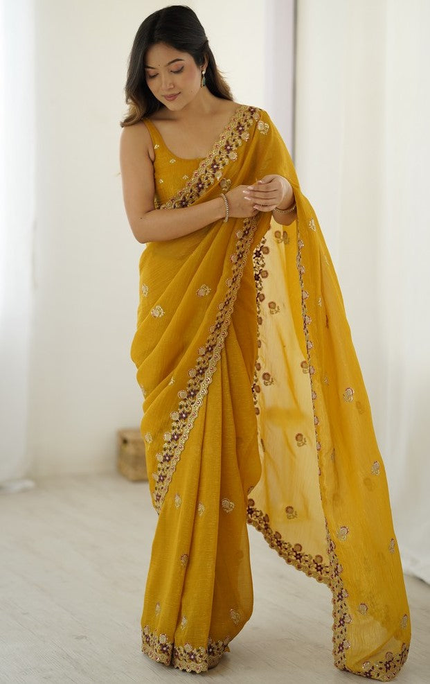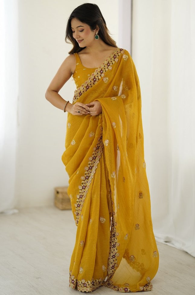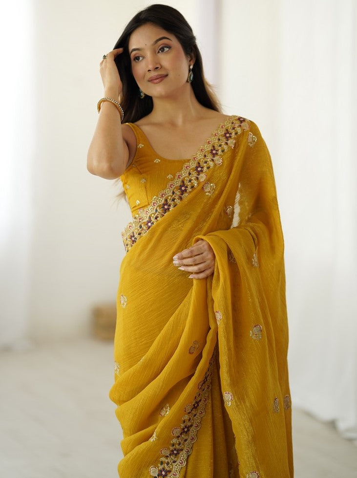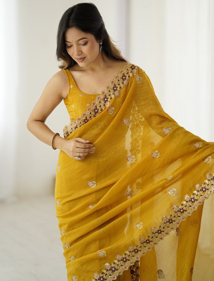 Wonderful Mustard Color Crunchy Fabric Designer Saree