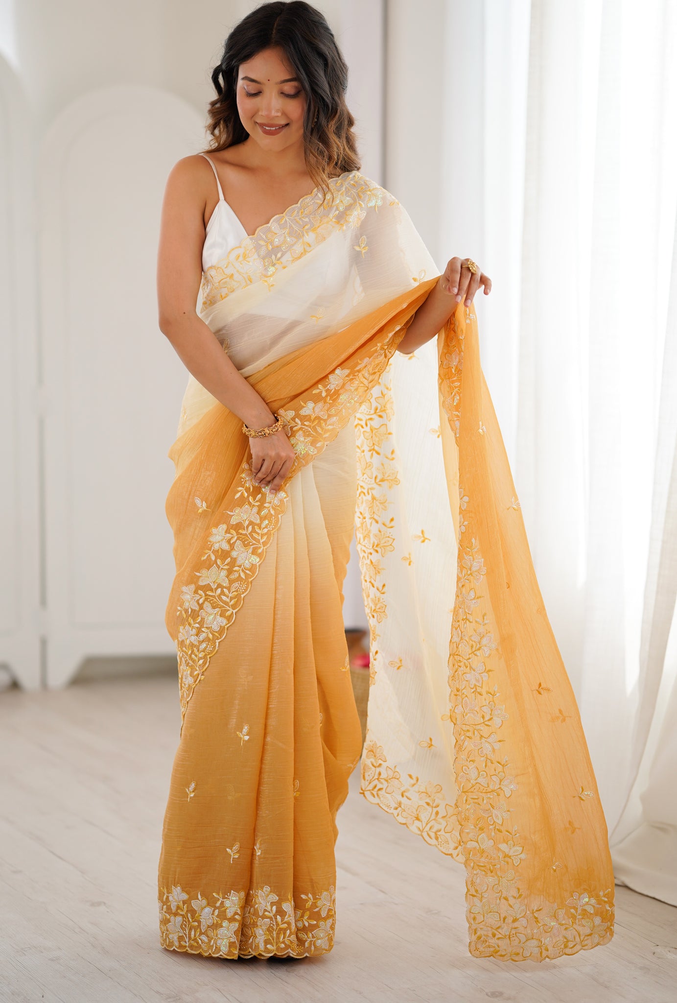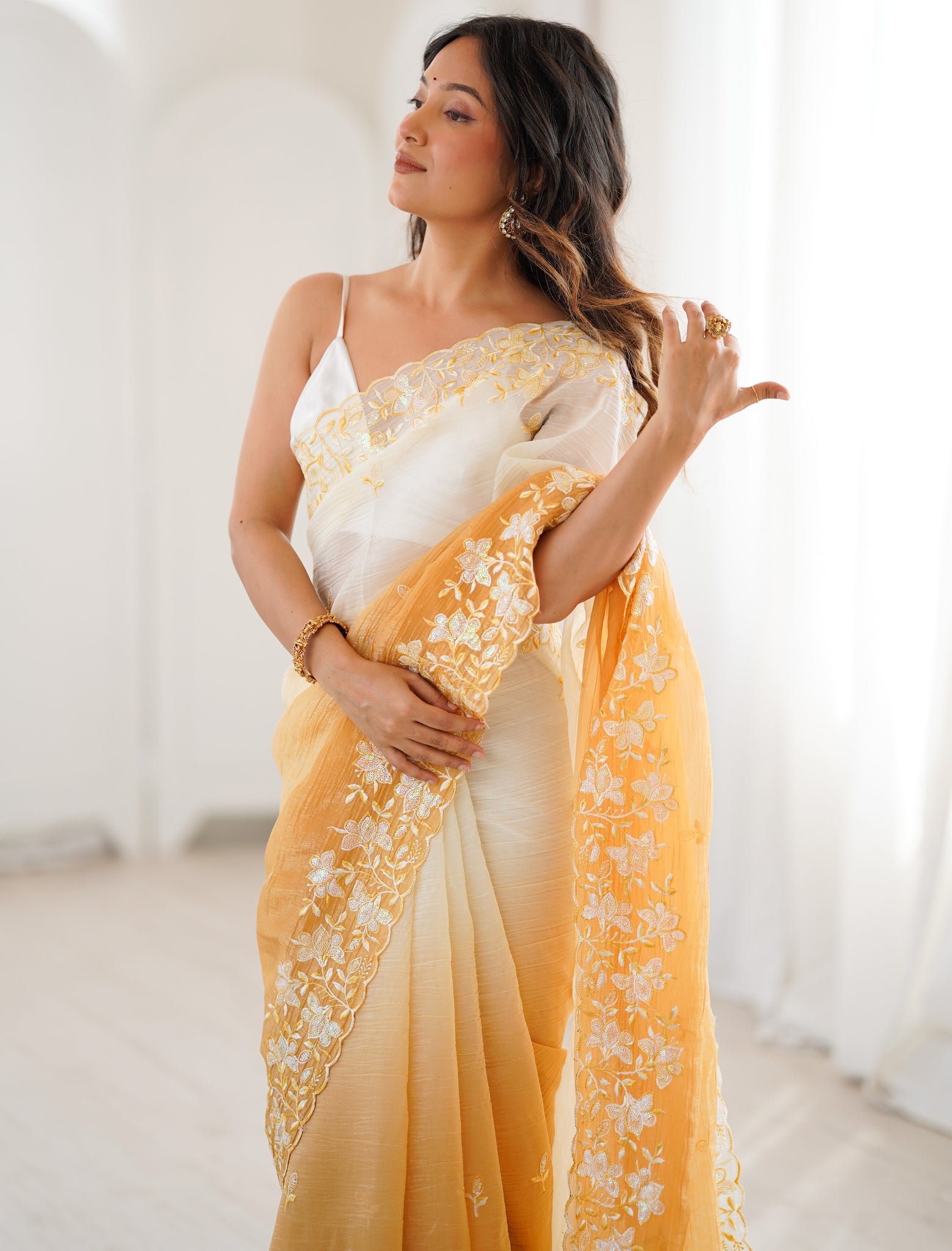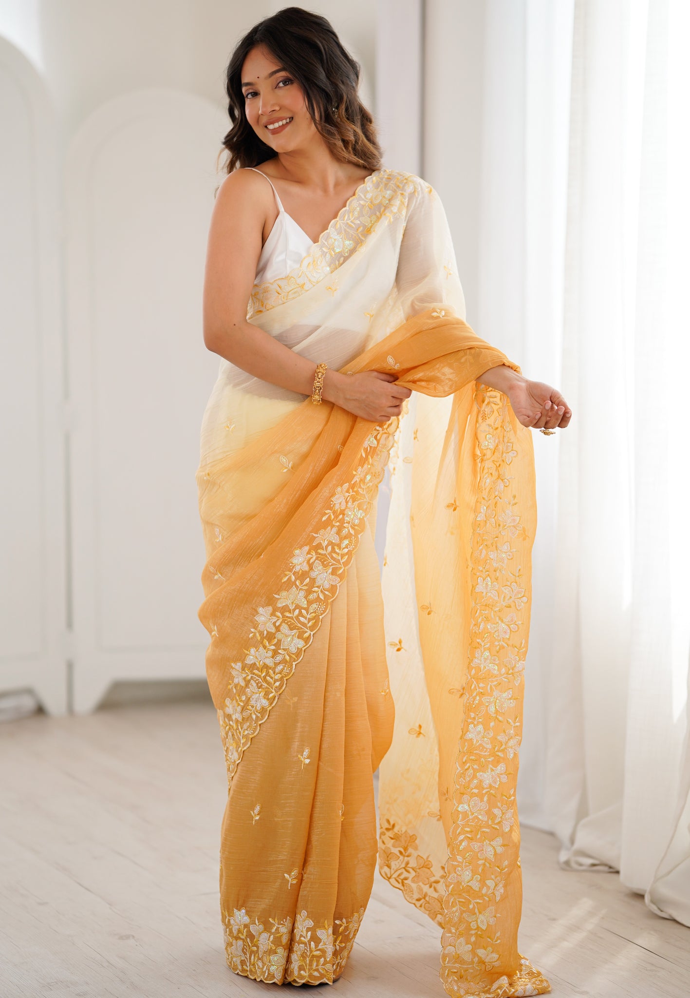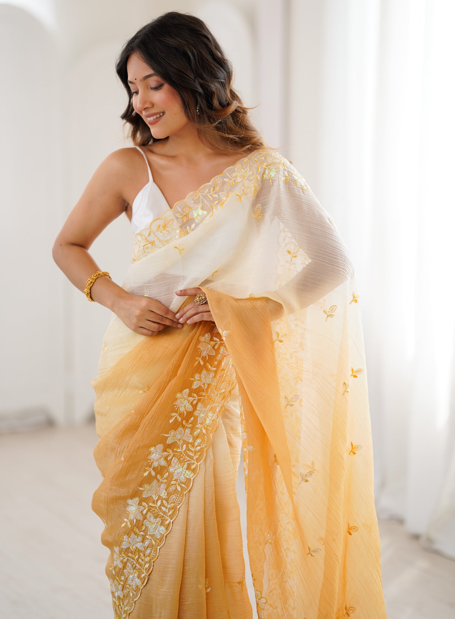 | Color | Saree Color - Yellow, Blouse Color - White |