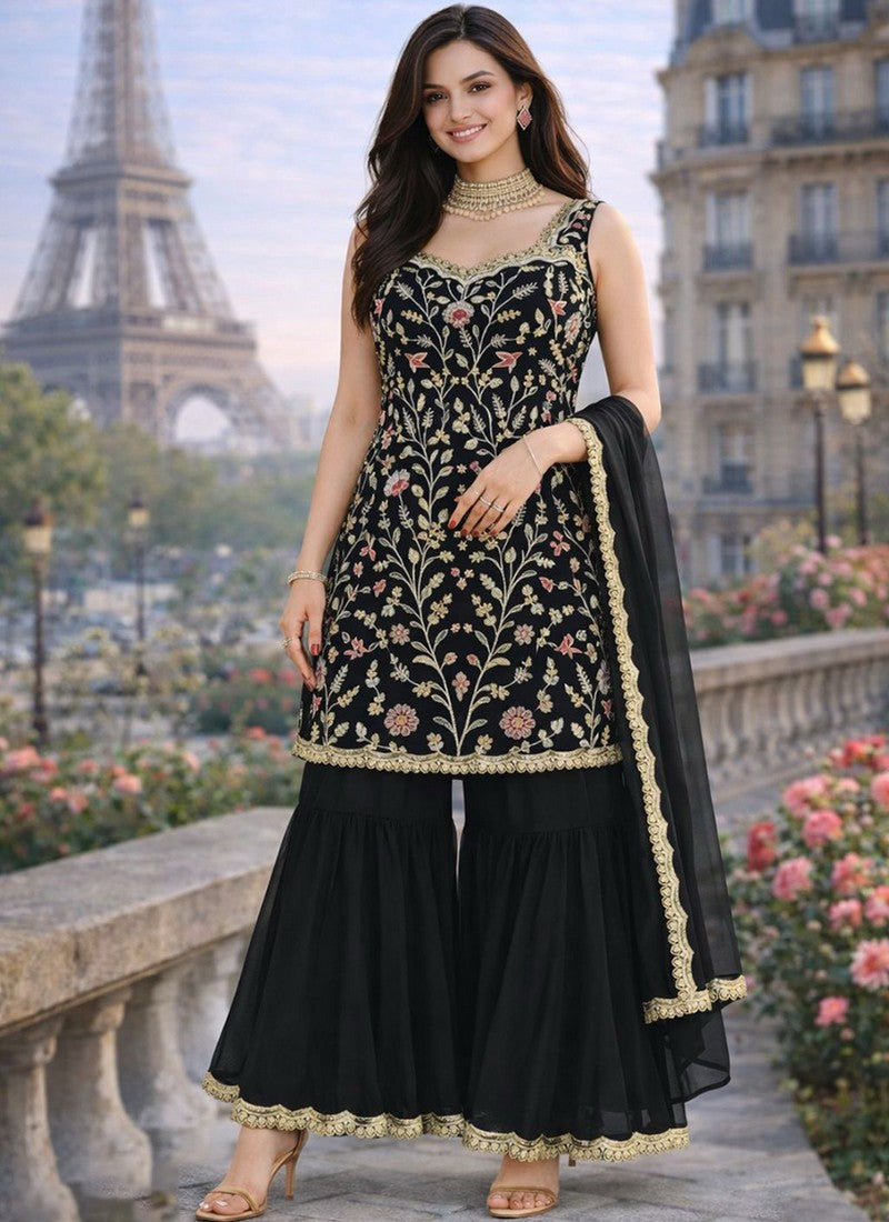 Beautiful Black Color Georgette Fabric Sharara Suit