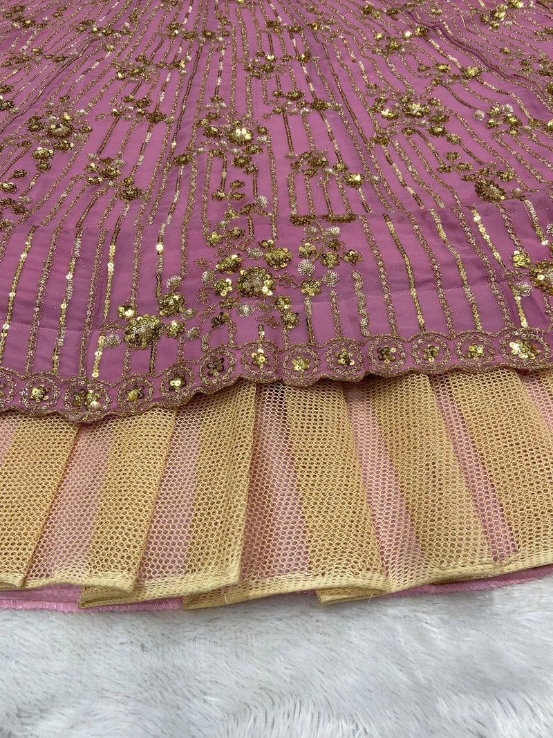 Desirable Pink Color Georgette Fabric Wedding Lehenga