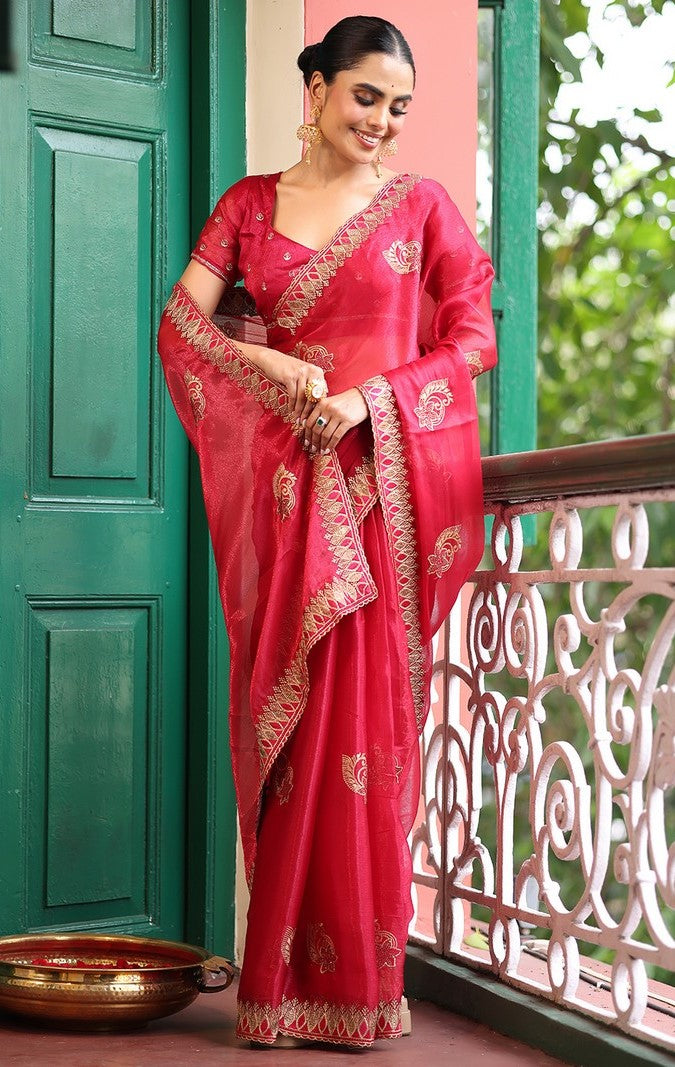Alluring Red Color Chiffon Fabric Partywear Saree