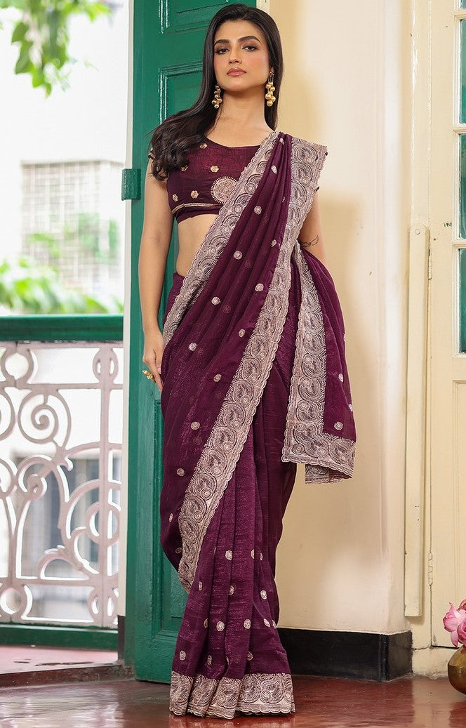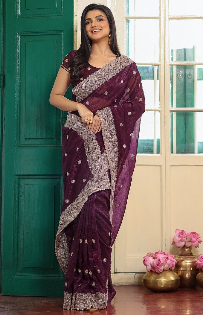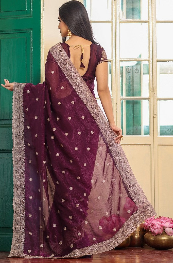 Alluring Wine Color Chiffon Fabric Partywear Saree