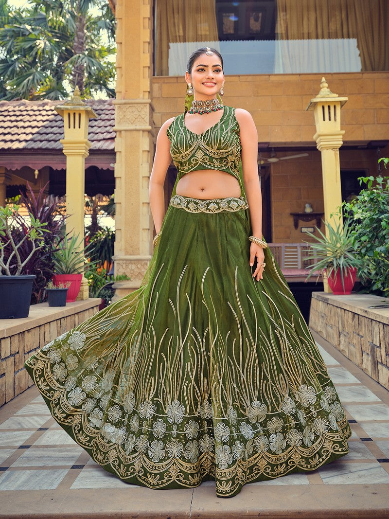 Amazing Green Color Net Fabric Party Wear Lehenga