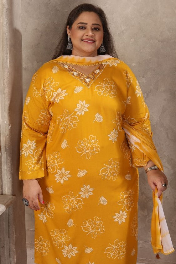 | Color | Top Color - Mustard, Bottom Color - Mustard, Dupatta Color - Mustard |