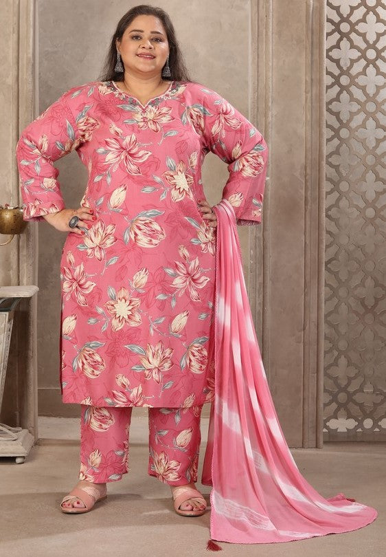 Attractive These Beautiful Looking Readymade Big Size Suits.These Top And Bottom Are Rayon And Dupatta Fabricated On Nazmeen.Its Beautified With Designer Printed With Hand Work.