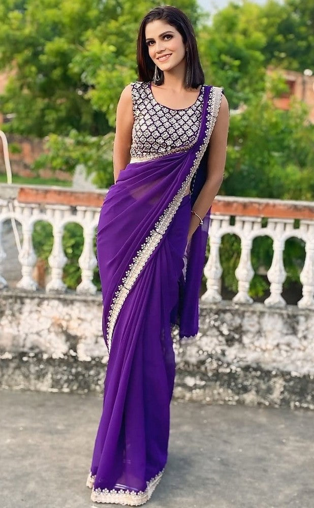 Amazing Purple Color Georgette Fabric Casual Saree