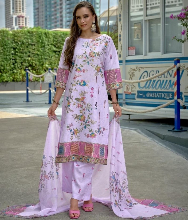Attractive These Beautiful Looking Readymade Suits.These Top And Bottom Are Linen And Dupatta Are Tabby Chiffon Fabricated.Its Beautified With Disigner Digital Foil Printed.