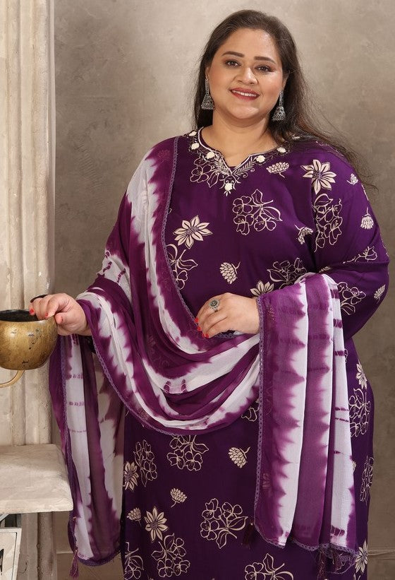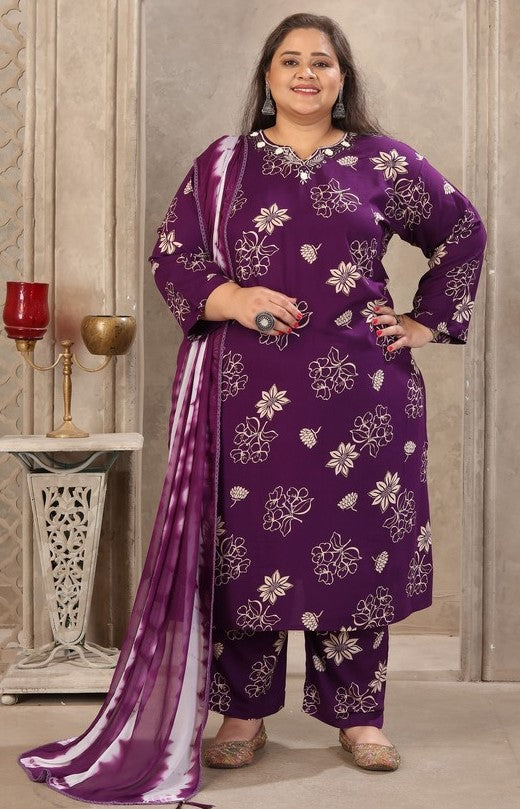 Amazing Voilet Color Rayon Fabric Casual Suit