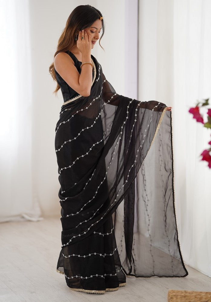 Beauteous Black Color Chiffon Fabric Designer Saree