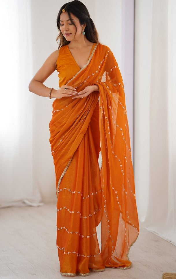 | Fabric | Saree Fabric - Sitara Chiffon, Blouse Fabric - Mono Banglori |