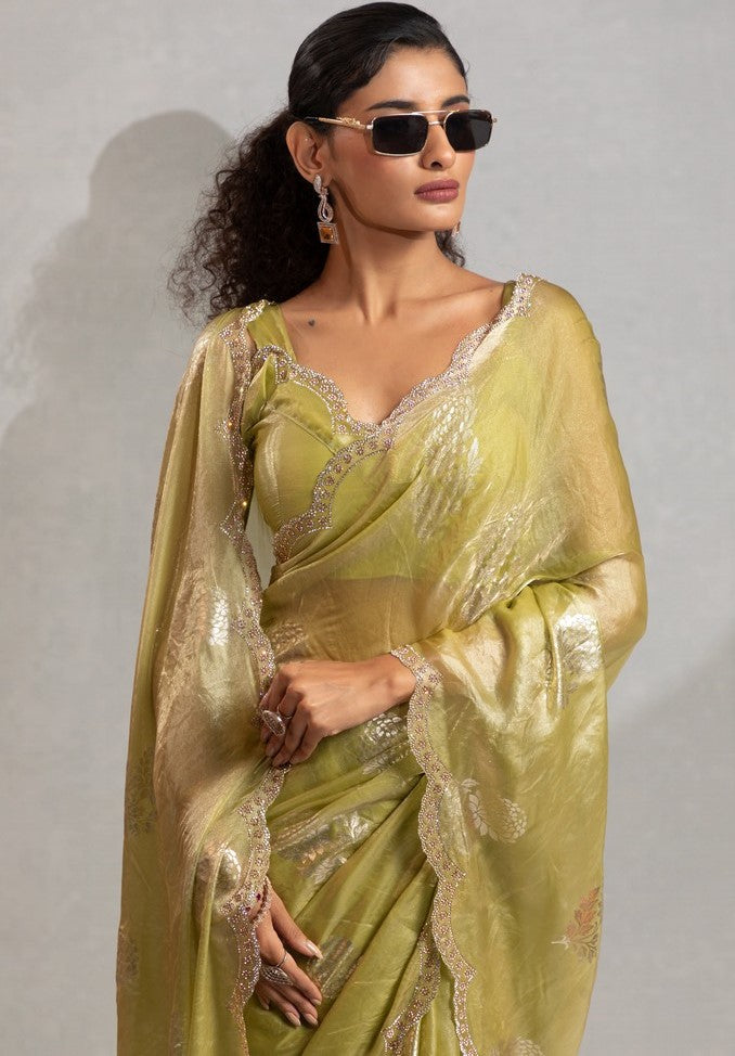 Beautiful Green Color Satin Fabric Designer Saree