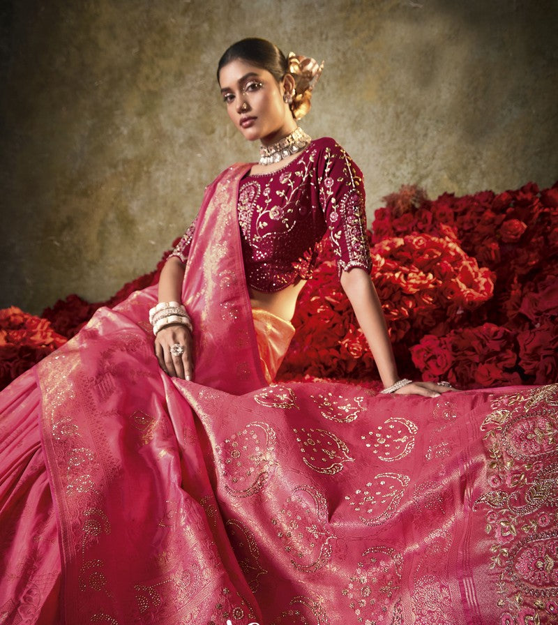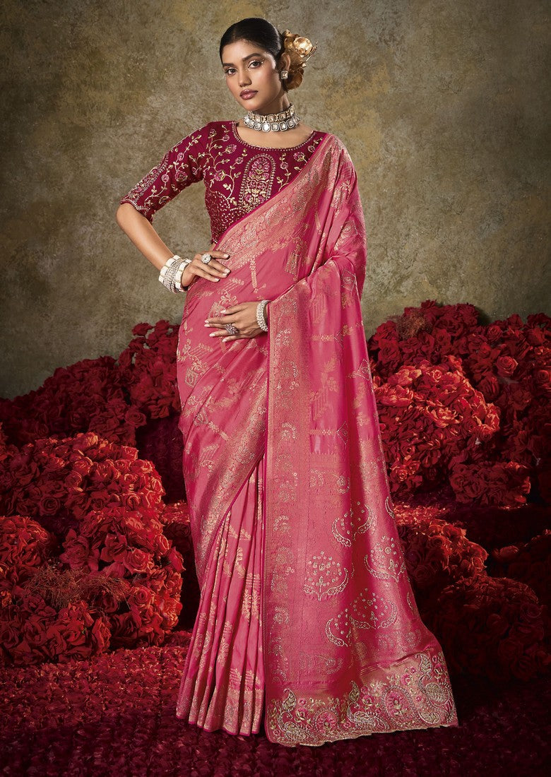 Beautiful Pink Color Silk Fabric Partywear Saree