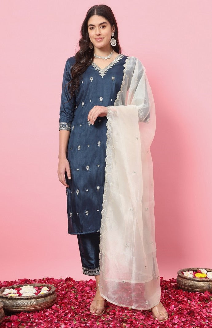 Looking These Beautiful Readymade Suits With Dupatta. These Suit is Fabricated On Top Are Silk Blend And Bottom Are Silk Blend And Nazmeen Dupatta . Its Beautified With Designer Embroidery Work.