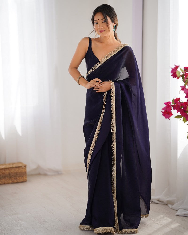 Beautiful Voilet Color Satin Fabric Designer Saree