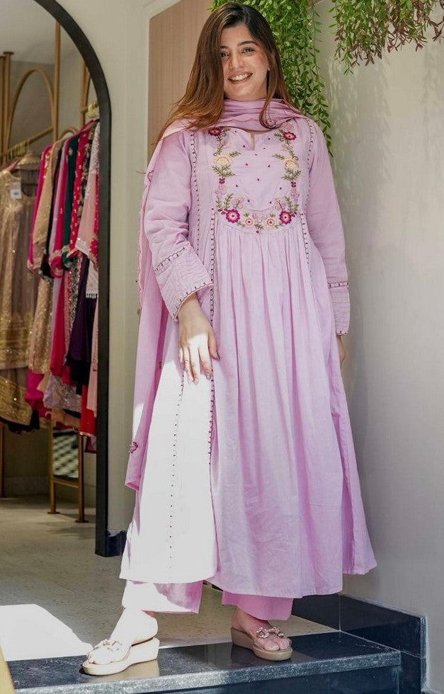 | Fabric | Top Fabric - Muslin Cotton,Bottom Fabric - Muslin Cotton,Dupatta Fabric - Chanderi |