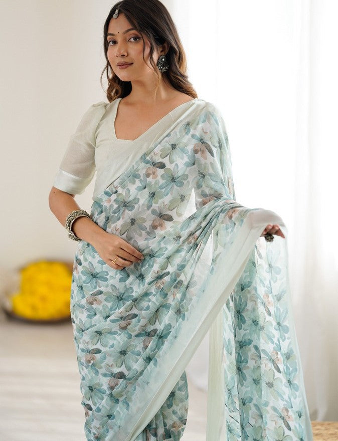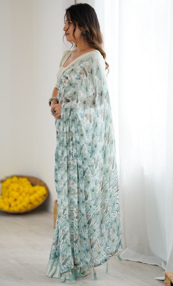 Grab These Party Wear Saree in Fine Colored.These Saree Are Moss Satin Patta And Blouse is Moss Satin Patta Fabricated.Its Beautified With Designer Printed.