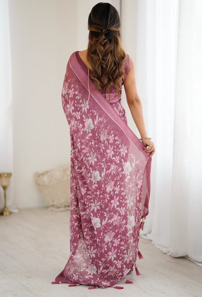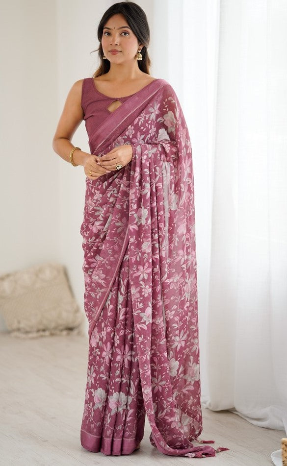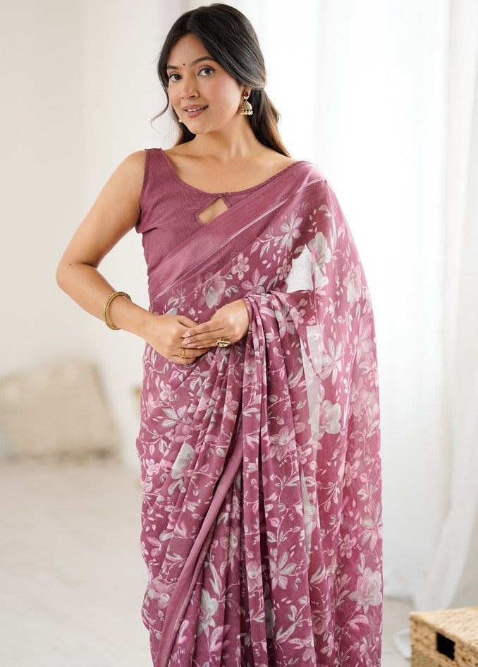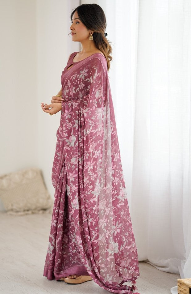 Grand Pink Color Satin Fabric Casual Saree
