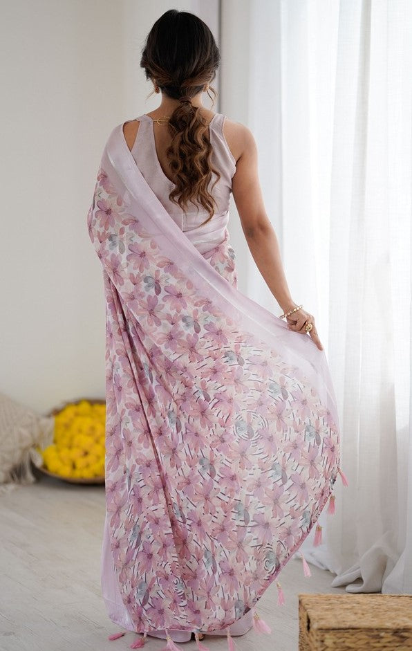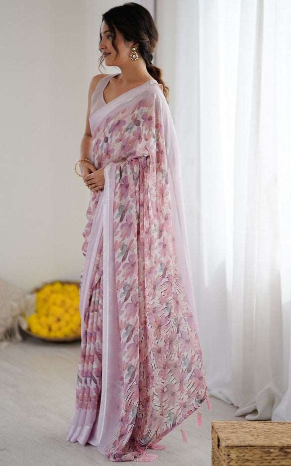 Grand Purple Color Satin Fabric Casual Saree