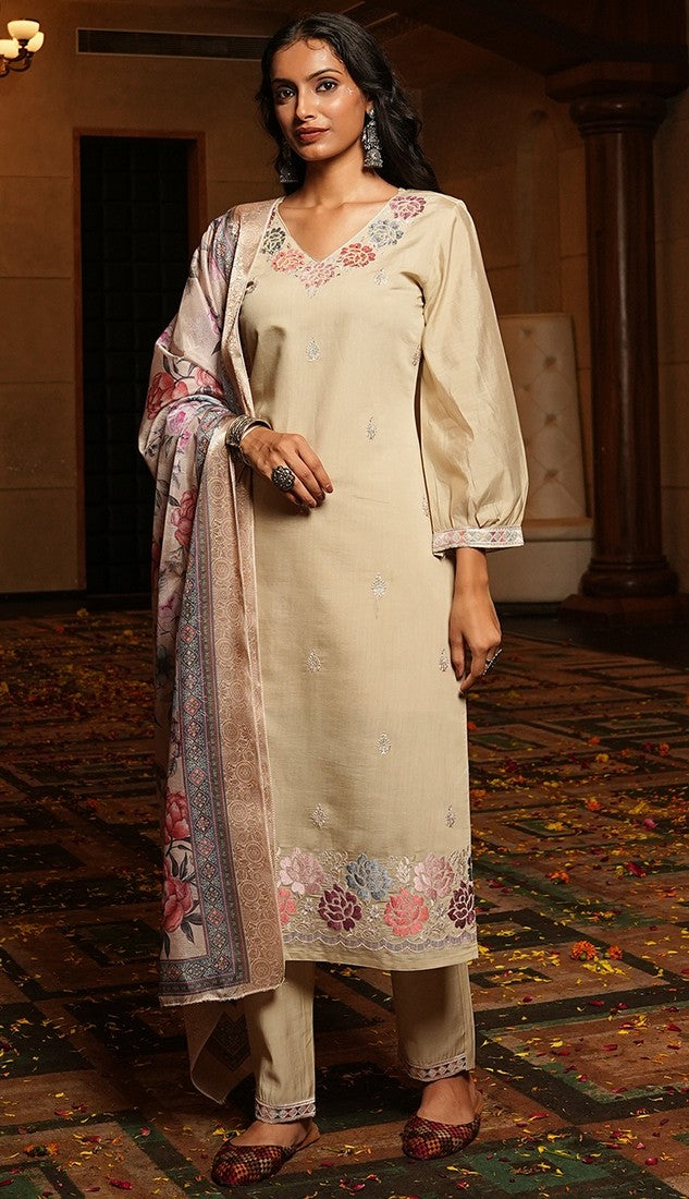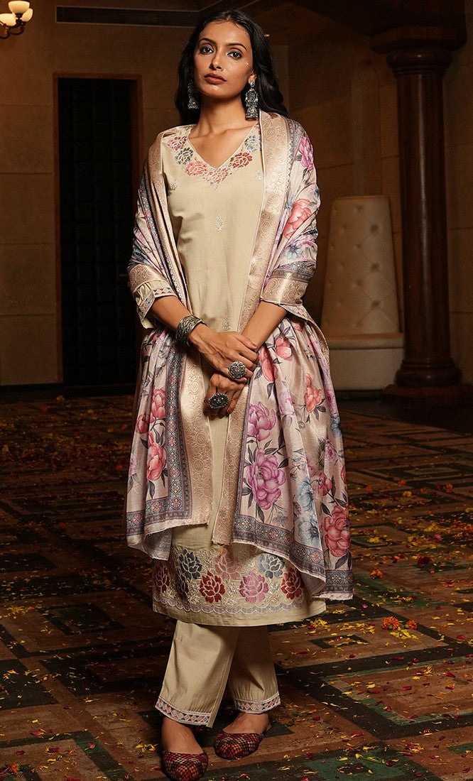Color Top Color - Cream, Bottom Color - Cream, Dupatta Color - Cream