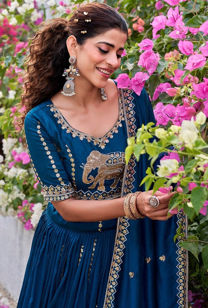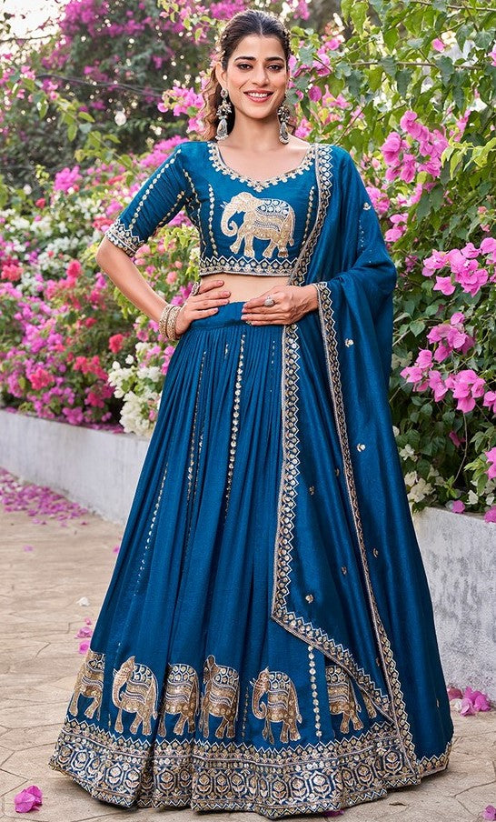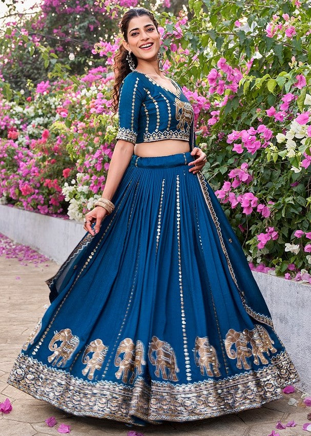 Magnetic Teal Color Viscose Fabric Party Wear Lehenga