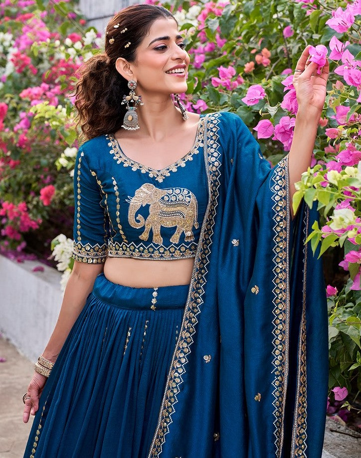 Designer Vichitra Fabric Partywear Lehenga Choli
