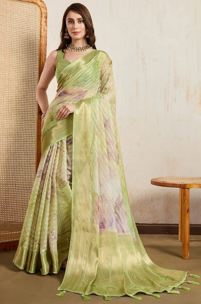 | Work | All Over Zari Butti and Digital Print With Rich Pallu and Fancy tassel for all seasons |