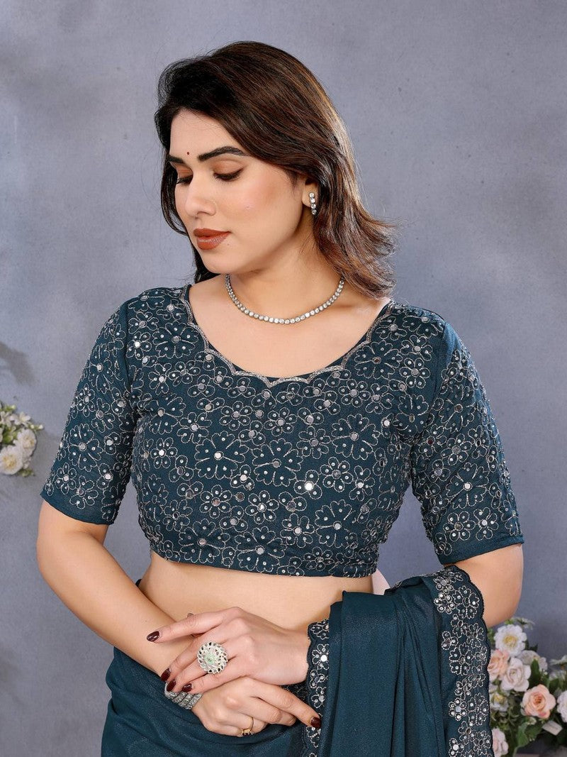 | Color | Saree Color - Teal, Blouse Color - Teal |