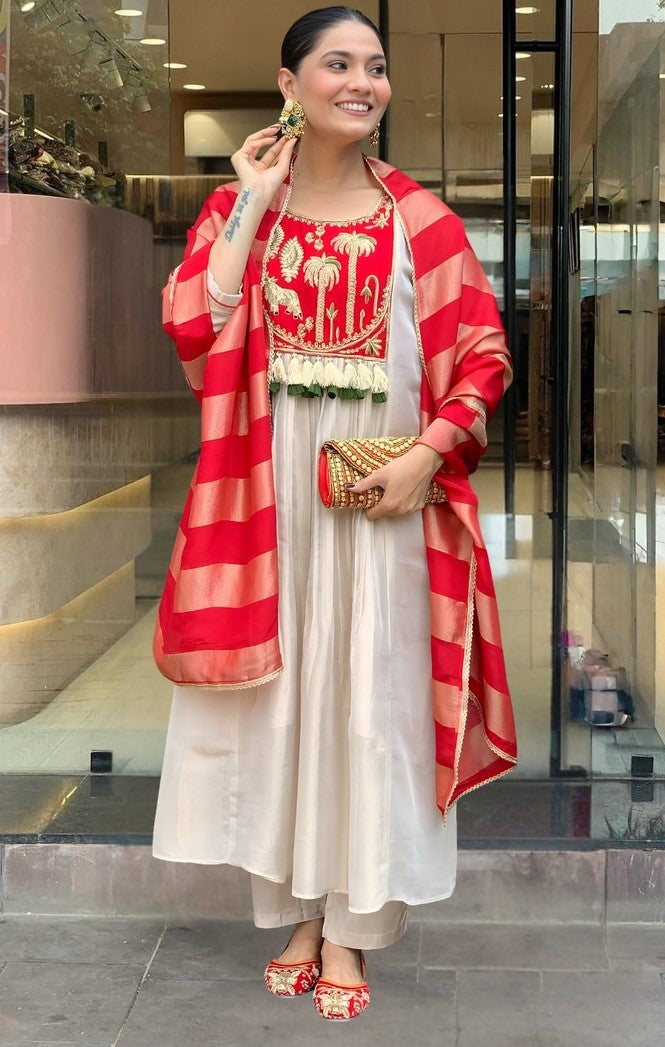 | Color | Top Color - Red, Bottom Color - Red, Dupatta Color - Red |